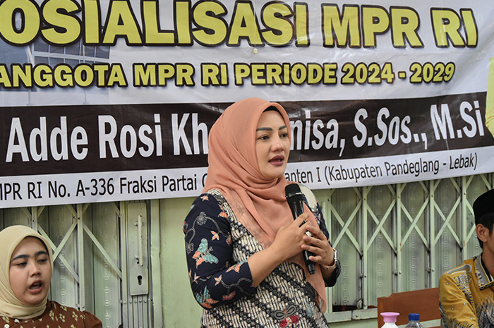 LEBAK, – Anggota Komisi X Dewan Perwakilan Rakyat Republik Indonesia dari Fraksi Partai Golkar, Adde Rosi Khoerunnisa melaksanakan kegiatan sosialisasi Empat Pilar Kebangsaan sekaligus penyerahan simbolis penerima program BPJS PBI di Gedung Serbaguna Desa Sipayung, Kecamatan Cipanas, pada Rabu, 1 April 2026.