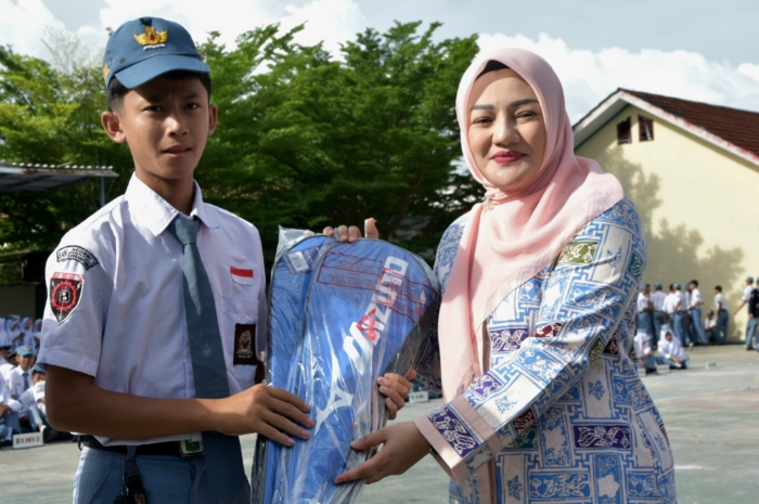 Bantuan tersebut diberikan secara simbolis sebagai bagian dari aspirasi masyarakat dan komitmen menghadirkan program pemerintah yang bermanfaat langsung bagi pelajar.