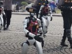 JAKARTA-Hari Ulang Tahun (HUT) Bhayangkara ke 79 di Monas Jakarta, Selasa (1/7/2025) menampilan 10 robot humanoid dan robot lain yang mengenakan atribut ….