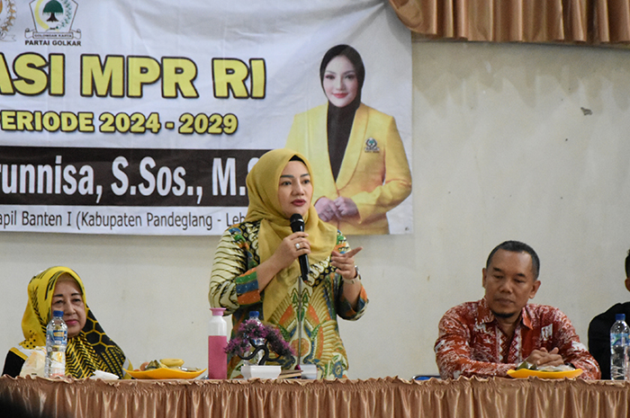 PANDEGLANG, – Anggota Komisi X Dewan Perwakilan Rakyat Republik Indonesia dari Fraksi Partai Golkar, Adde Rosi Khoerunnisa melaksanakan kegiatan sosialisasi Empat Pilar Kebangsaan sekaligus penyerahan simbolis penerima program BPJS PBI di Gedung Koguri Pandeglang, Kabupaten Pandeglang, pada Jumat, 3 April 2026.
