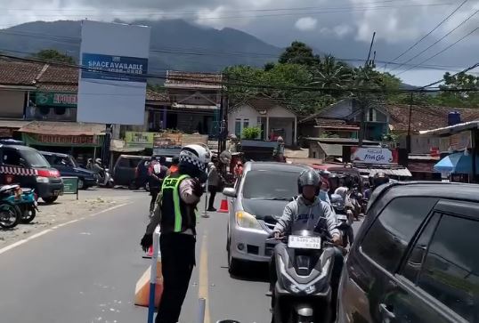 Kepala Pos Pengamanan Lebaran Mengger, Aap Ahmad Syafei, mengungkapkan volume kendaraan terus meningkat sejak malam hingga siang hari.