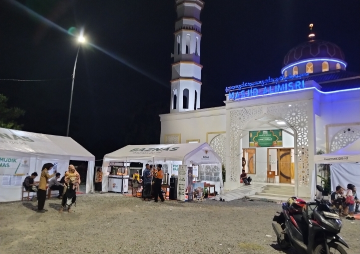 Perlu diketahui, posko mudik Baznas di halaman Masjid Alimisri menyediakan berbagai kebutuhan pemudik dari tempat istirahat, minum, makan gratis.
