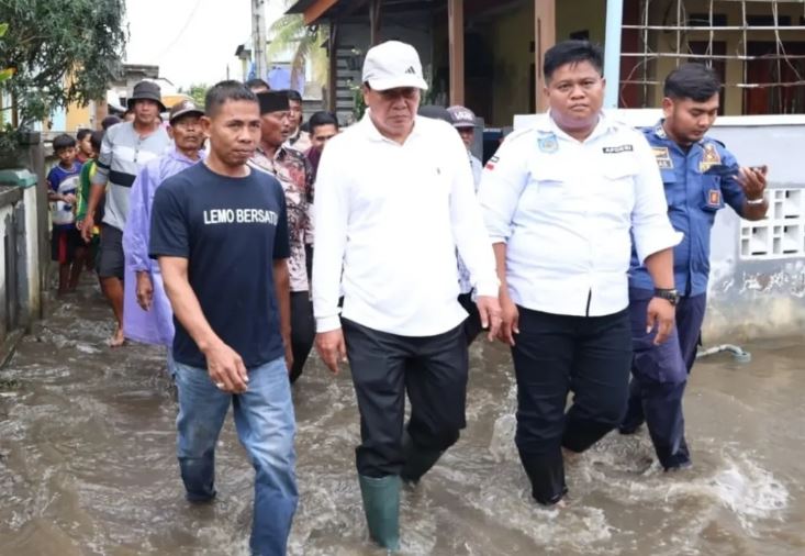Bupati Tangerang Moch. Maesyal Rasyid tinjau lokasi banjir ditemani Plh Sekretaris Daerah Kabupaten Tangerang Iwan Firmansyah, Kepala Pelaksana BPBD Kabupaten Tangerang Ahmad Taufik, Camat Teluknaga, serta unsur Forkopimcam